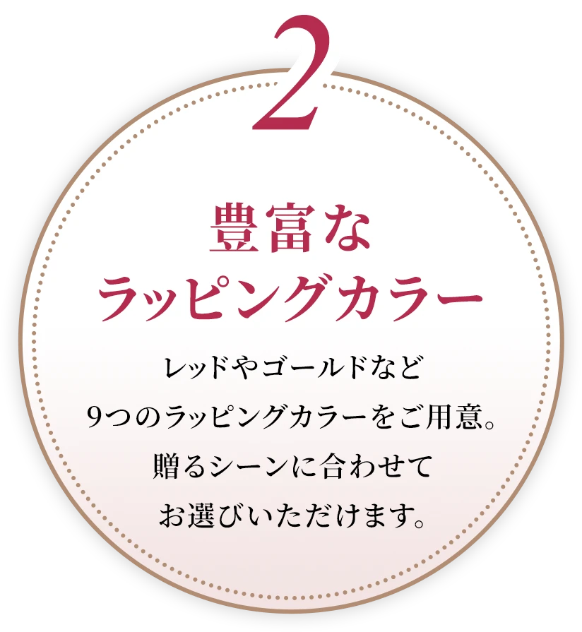 また、ラッピングカラーはレッドやゴールドをはじめ、全9⾊系統をご⽤意。