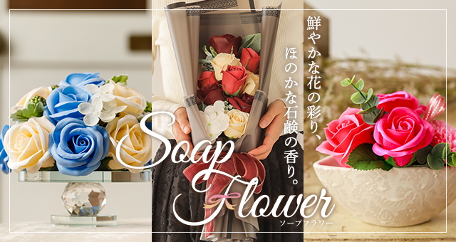 鮮やかな花の彩りと、ほのかな石鹸の香りが楽しめるソープフラワー電報。「フレンチドーム」「ロゼポッド」「ボルドールーヴ」の3つの商品をご紹介します。