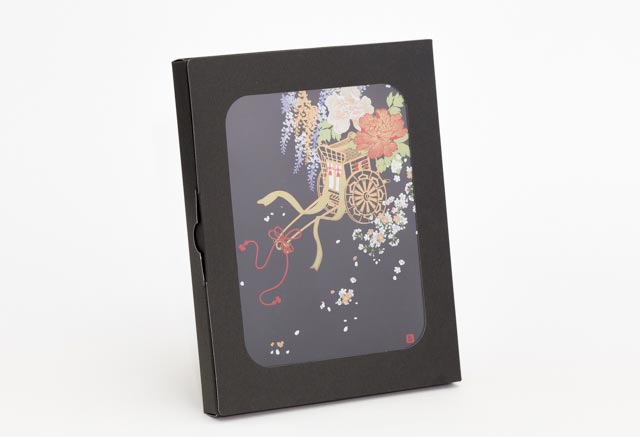 本漆のケースに職人が1点1点蒔絵(まきえ)付けした高級うるし電報。結婚式や就任・昇進など、大切な祝福の言葉をお伝えするのにふさわしい祝電台紙です。